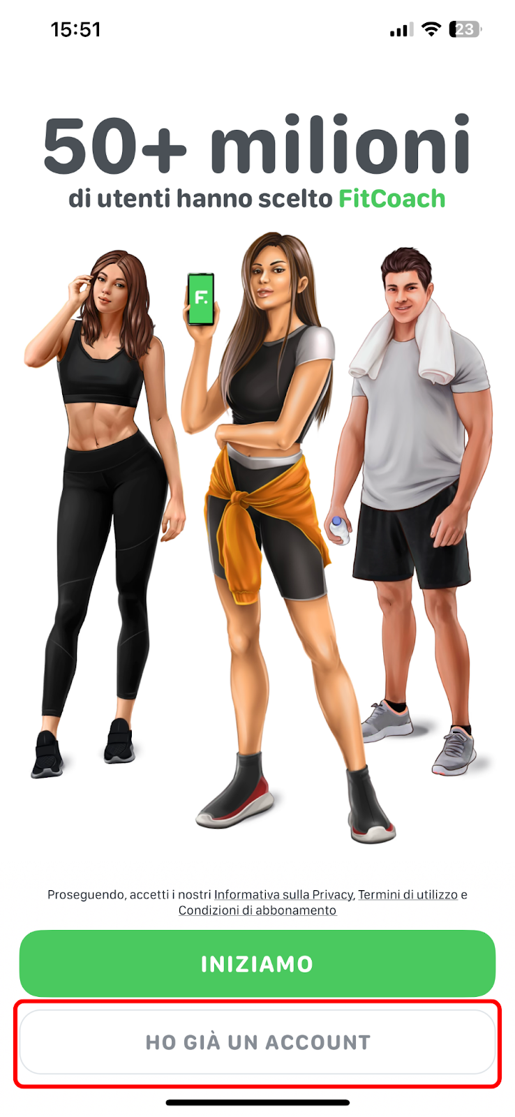 2. Apri l’app e tocca il pulsante "Ho già un account" nella prima schermata, come mostrato qui sotto: